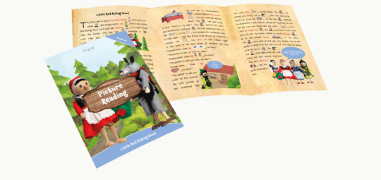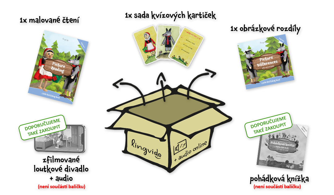 Pohádkový set obsahuje vzájemně provázané produkty z pohádky Červená Karkulka v angličtině. Varianta je určená pro větší děti, které jsou cíleně vedené k angličtině. Jednotlivé části pracují s poutavým příběhem pohádky a dávají dětem možnost se cíleně rozvíjet v angličtině.
