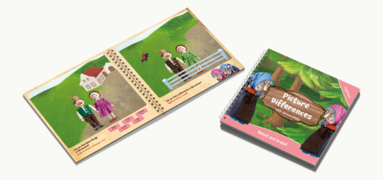 Produkt je navržen tak, aby zábavným způsobem rozvíjel zrakové vnímání, pozornost a anglickou slovní zásobu. Každý obrázek je pečlivě ilustrován s důrazem na přitažlivost pro děti – jasné barvy, detaily a přívětivé postavy přitahují dětskou pozornost a udržují jejich zájem po celou dobu aktivity. Obrázky jsou zábavné, lehce srozumitelné a obohacené o malé rozdíly, které dětem nabízejí výzvu při jejich hledání.