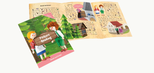 Pohádkový set obsahuje vzájemně provázané produkty z pohádky O perníkové chaloupce v angličtině. Varianta je určená pro menší děti. Jednotlivé části pracují s poutavým příběhem pohádky a dávají dětem možnost se cíleně rozvíjet v angličtině.